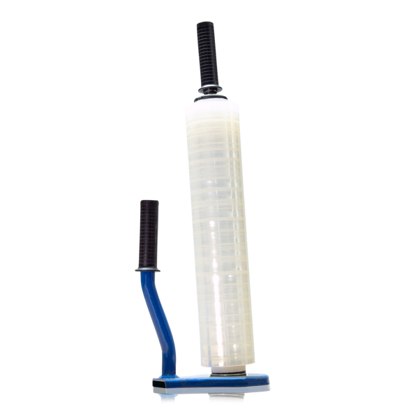 Handhållen sträckfilmshållare (legahållare) med justerbar friktion för enkel och kontrollerad sträckfilmsutdragning.